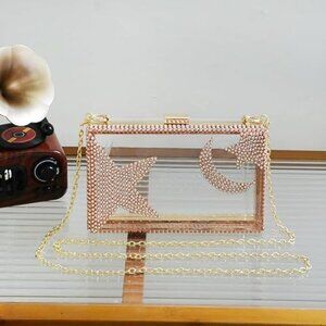 Neiman Marcus Champagne Acrylic Moon and Star Rhinestone Chain Bag