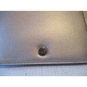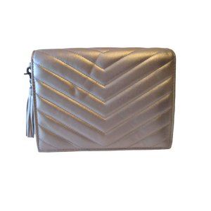 Chic Neiman Marcus clutch in champagne gold with a chevron stitched quilted design Shimmer and glitter soft faux leather. Stylish tassel accent. Perfect for adding a touch of elegance to any outfit. 9"L x 6.5"H x 1"W. Expandable. Snap Closure.