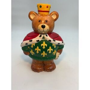 Neiman Marcus Cookie Jar Teddy Bear King Crown Vintage 1994 Hand Painted