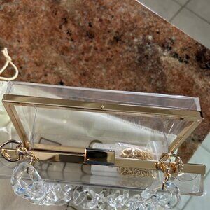 Turn heads with this crystal-clear statement piece—crafted from high-quality acrylic with gold-tone hardware, the Clear Acrylic Box Clutch Handbag delivers a chic and structured silhouette perfect for modern events and stadium-approved style.