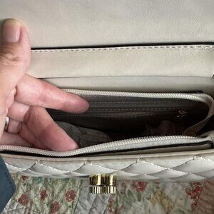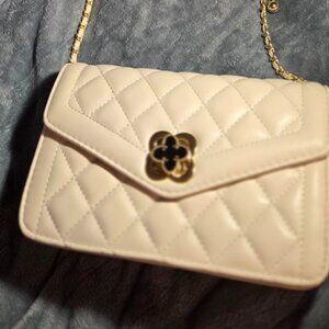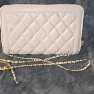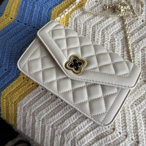 Neiman Marcus Clover White and Gold Quilted Leather Crossbody Bag