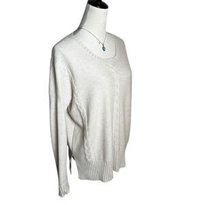 Neiman Marcus Cream Cashmere Cable Knit Relaxed Sweater M Luxury Minimalist Chic