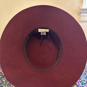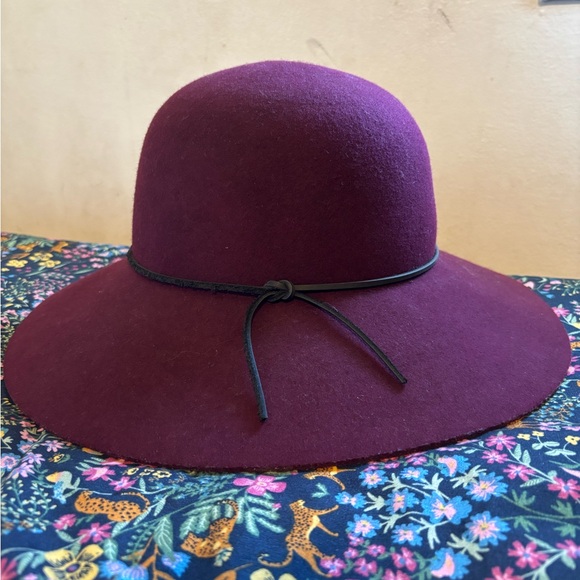 Chic and stylish deep purple hat. Features a sleek black band. Ideal for elevating any look.
