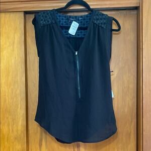 Neiman Marcus Dex Black Sleeveless Blouse Zipper Front Quilted Imprinted Accent