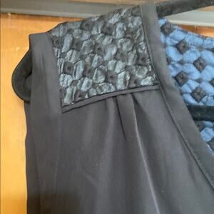 It does not have a fabric tag, so unsure if it is silk or not. Very cool unique blouse.This sophisticated black sleeveless blouse from Neiman Marcus is a versatile addition to any wardrobe. Crafted with a sleek design, it offers a timeless style that can effortlessly transition from day to night. Ideal for layering or wearing on its own, this blouse is a must-have for those seeking elegance and comfort.