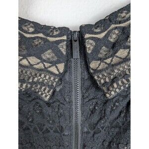 Condition: Gently worn, no visible flaws. All seams, lace overlays, and lining intact. Zipper functions properly with no snags. Lace detail is beautiful and undamaged.