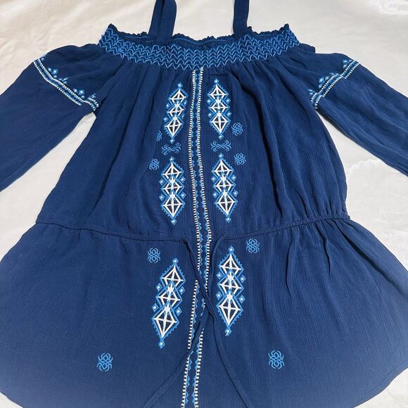 Neiman Marcus Embroidery Floral Peasant Cottagecore Boho Blue SZ M Long Sleeve