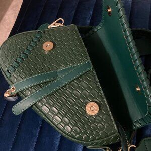 Neiman Marcus Emerald Green PU Leather Crocodile Saddle Bag