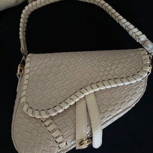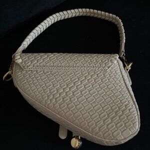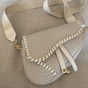 Neiman Marcus Emerald White PU Leather Crocodile Saddle Bag