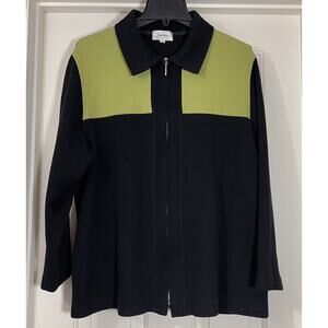 Neiman Marcus Exclusive Jacket 1X Black Green Colorblock Zip Cotton USA. Excellent Preowned Condition.