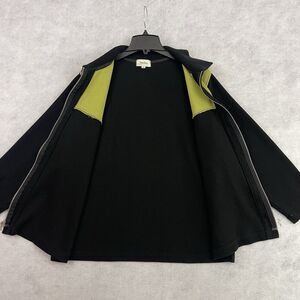 Neiman Marcus Exclusive jacket colorblock zip up black green chartreuse plus size 1X made in USA cotton lightweight long sleeve collared modern minimalist casual chic luxury fashion designer layering statement piece classy timeless wardrobe essential