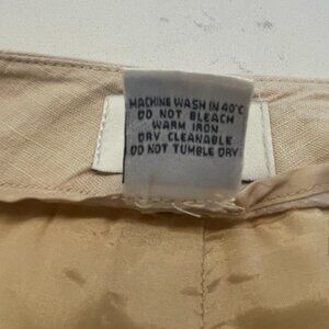 Linen Bermuda style shorts with pockets, Cuffed hem, and Beige color.