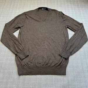 Neiman Marcus Exclusive Mens Sweater Large V Neck Merino Wool Silk Cashmere