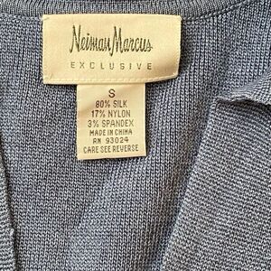 Neiman Marcus Exclusive Silk Blend Long Sleeved Collared Blue V-Neck Sweater S