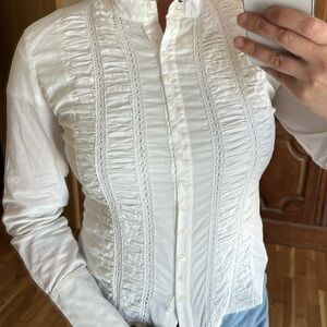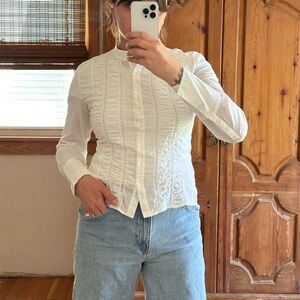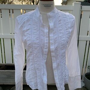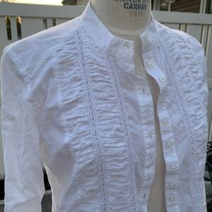 Neiman Marcus Exclusive White 100% Cotton Button and Ruffled Blouse Medium