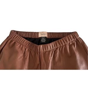 Neiman Marcus Exclusive Women's Brown Elastic Waist Leather Pants Size Medium