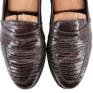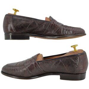 Neiman Marcus Exotic Teju Lizard Brown Dress Shoes Men 8.5 Handmade Penny Loafer