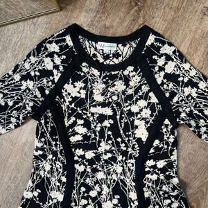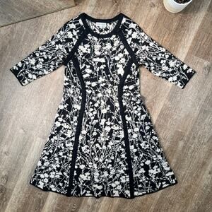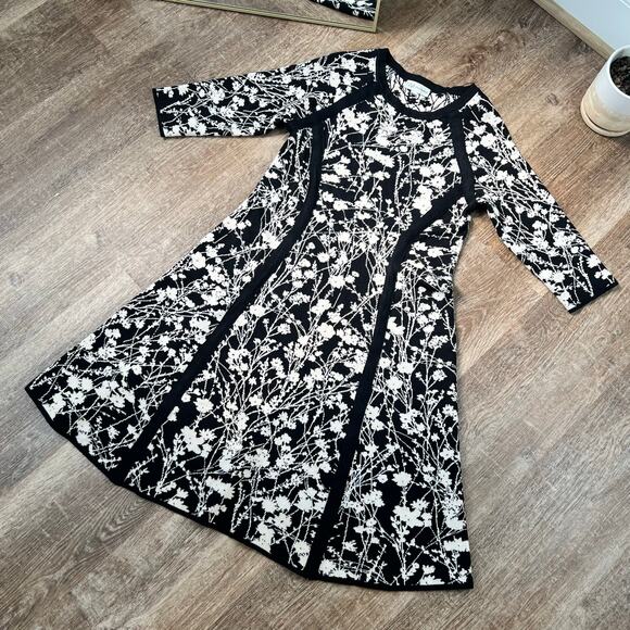 Neiman Marcus Floral Print Knee Length Dress Black and White