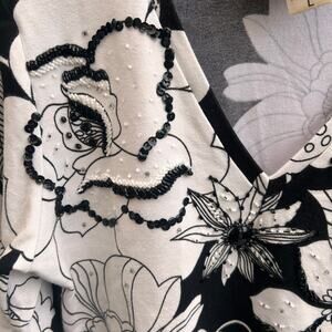 Neiman Marcus Floral Viscose Knit Beaded Blouse Size L