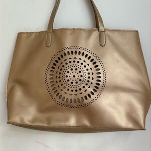 Neiman Marcus Gold Tone Lazer Cut Tote Bag - Some marks see photos