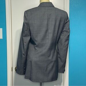 This Neiman Marcus blazer in a sophisticated gray hue features classic notched lapels and a structured shoulder line. Crafted from a premium 100% wool fabric, it offers a modern fit that aligns with current fashion trends. Ideal for both professional and casual occasions, this blazer is a versatile addition to any wardrobe.