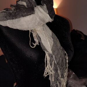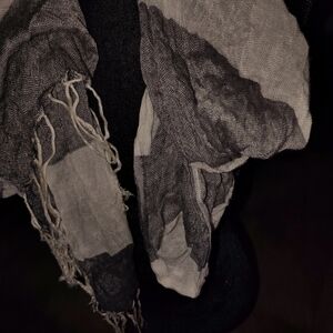 Chic Neiman Marcus scarf in gray and cream. Adds elegance to any outfit.