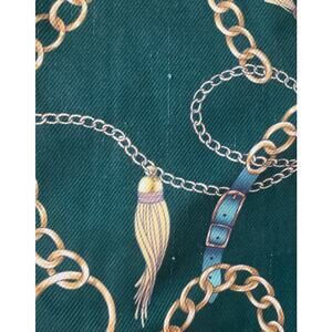 Neiman Marcus Green Chain-Print Wrap V-Neck Midi Dress Small Flutter Sleeve Belt
