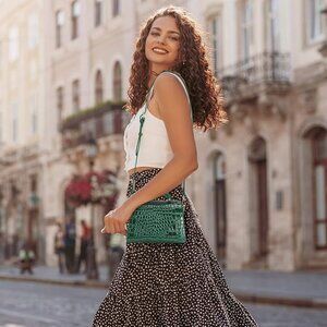Neiman Marcus Green Crocodile-Embossed Crossbody Shoulder Bag