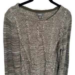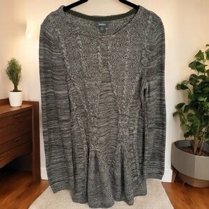 Neiman Marcus Green Ivory Tight Knit Long Sleeve Chucky Pleated Sweater Size M