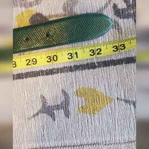 Elevate your style with this elegant green leather belt featuring a striking gold buckle. Perfect for adding a touch of sophistication to any outfit.