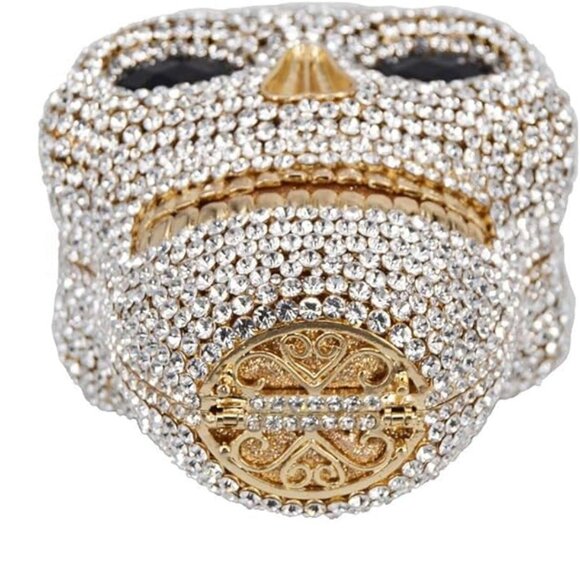 Design: Inspired by gothic-luxe aesthetics, this novelty skull-shaped clutch is fully encrusted with meticulously hand-applied rhinestones on a high-quality metal frame. The sparkling stones shimmer brilliantly under both daylight and evening light, creating an unforgettable visual effect. Interior is lined with soft faux leather for a smooth, premium touch.