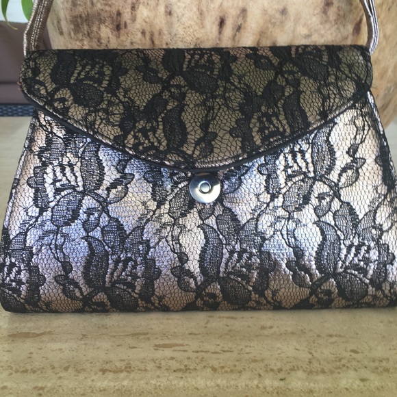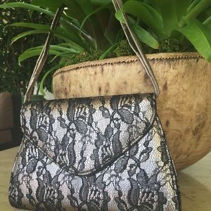 Neiman Marcus Handbag / metallic lace with adjustable handle - be used as a clutch handle or cross body.