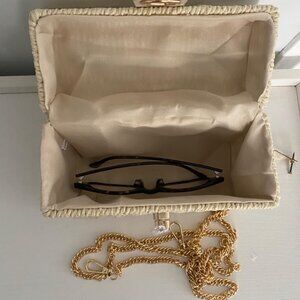 Featuring a classic square silhouette, this woven rattan bag brings timeless elegance to your summer style. Its structured shape and natural texture make it a perfect addition to any outfit, from casual brunch looks to breezy beachwear.