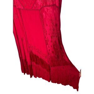 Neiman Marcus L Embroidered Long Sleeve Maxi Dress Viscose Boho Patchwork Red