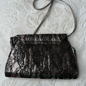 Neiman Marcus Lace Overlay Crossbody Clutch Bag