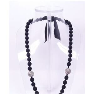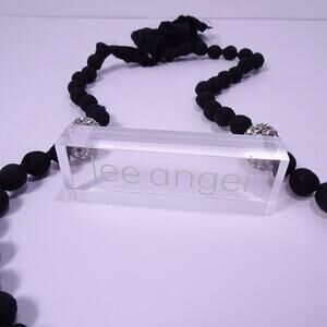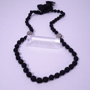 Neiman Marcus Lee Angel Black Silk Coated Knotted Fireball Tie Necklace NWT 598