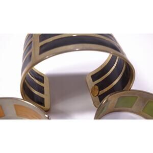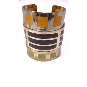 Neiman Marcus Lee Angel Silver Enamel Wide Cuff Bracelet Set NWT 398 3 PCS