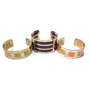Black three-striped enamel in wide silver plated cuff with Lee Angel Stamped