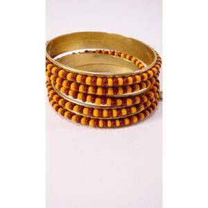 Orange Burgundy Bead Stackable Bangle Bracelet Set of 5