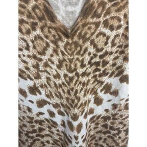 Neiman Marcus Leopard Cashmere Scoop Neck L Brown Ivory 1475