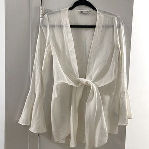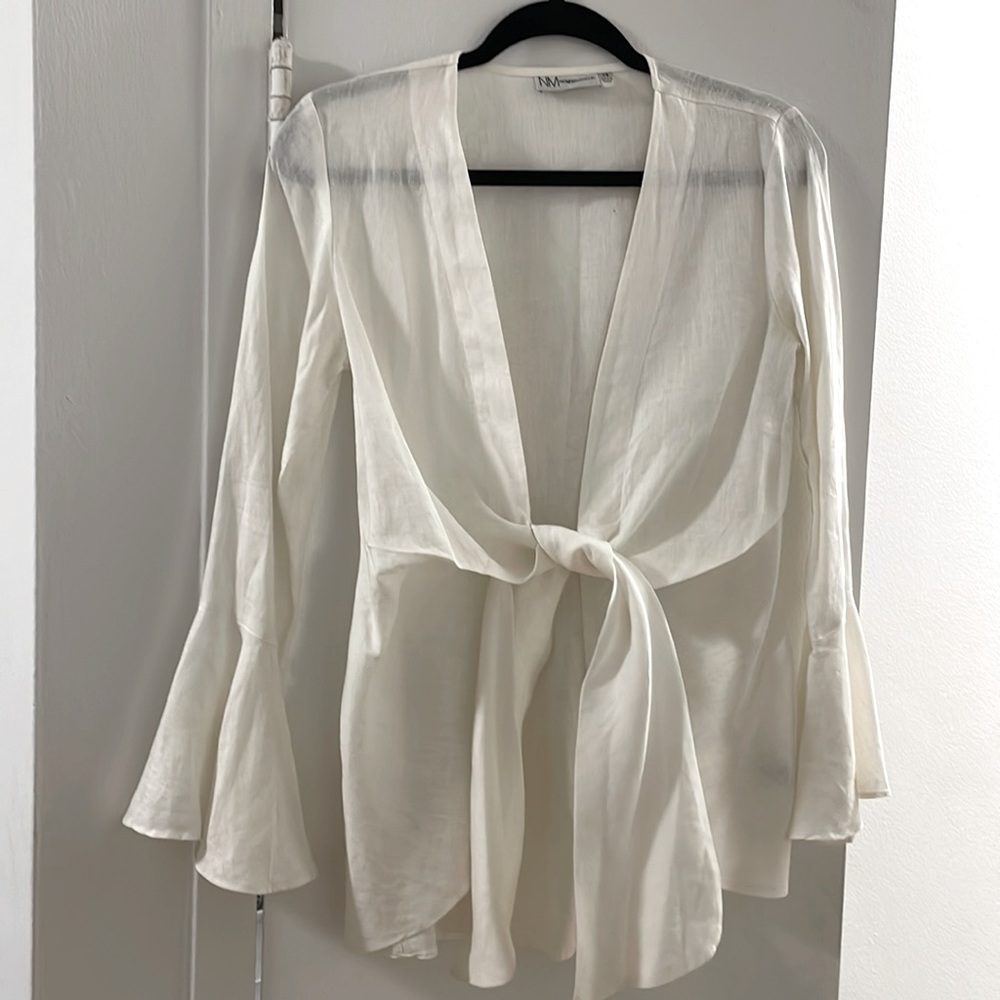 Neiman Marcus linen top with front tie. Size xs. Bell sleeve detail. Worn once.