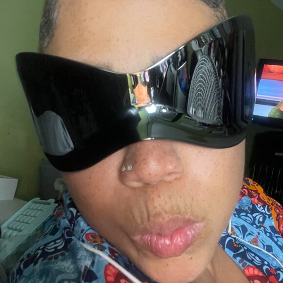 Flat lines and aesthetically bold "matrix" appearance. The fashion and stylish butterfly full coverage design visor glasses for men and women.