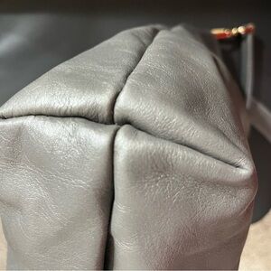 Neiman Marcus Made In Italy Gray Leather Handbag Gold Tone Hardware this is a beautiful handbag clean inside and out. Has option to remove adjustable shoulder strap or hand strap, both are removable and makes this handbag versatile. Has zip pocket on front, a zip pocket interior with 2 open pockets interior.