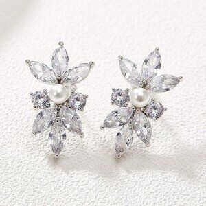 Finest Quality AAAAA Grade Cubic Zirconia, Silver Plated Copper. Delicate copper post with bullet clutch earring backs. Safe for Sensitive Ears, Hypoallergenic, Nickel-Free, Lead-Free.