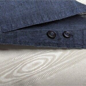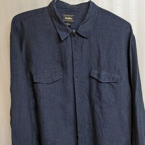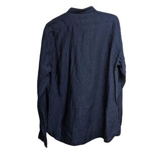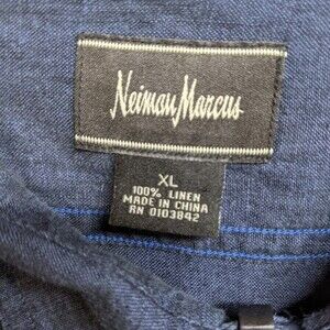 Neiman Marcus Men XL Long Sleeve Collared Button-Down Shirt 100% Linen Navy Blue