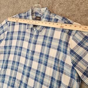 Neiman Marcus Men XXL Short Sleeve Linen Button Shirt Blue White Check