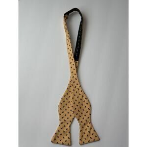 Neiman Marcus Men's 100% Silk Bow Tie Yellow with Blue, Black, White Flowers USA