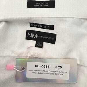 Neiman Marcus Men's Dress Shirt Button Up White Split Collar