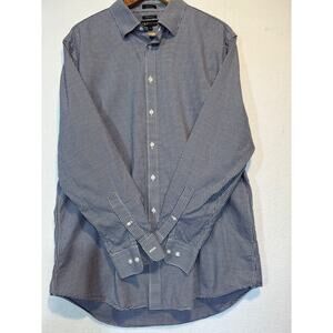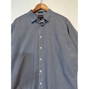 Neiman Marcus Mens Large Blue White Plaid Trim Fit Button Up Shirt 17 34/35