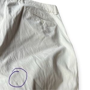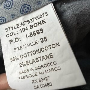 Men’s size 38 light beige khaki chino pants by Neiman Marcus. Cotton and elastane blend. These pants are in good pre-owned condition but do have 2 very small blemishes as seen in the photos. Long inseam at 35”.